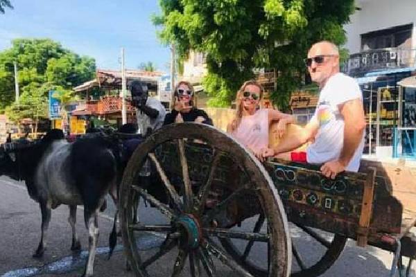 அம்பாறை மாவட்டத்தில் சுற்றுலாத்துறைக்கு புகழ்பெற்று காணப்படுகின்ற பொத்துவில் அறுகம்பை பிரதேசத்தில் வெளிநாட்டு சுற்றுலா பயணிகள் மாட்டு வண்டியில் பிரயாணம் செய்து வருகின்றனர்.